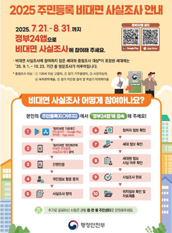 | 비대면 조사 | 2025년 7월 21일 ~ 8월 31일 | 정부24 앱 통한 온라인 참여 |